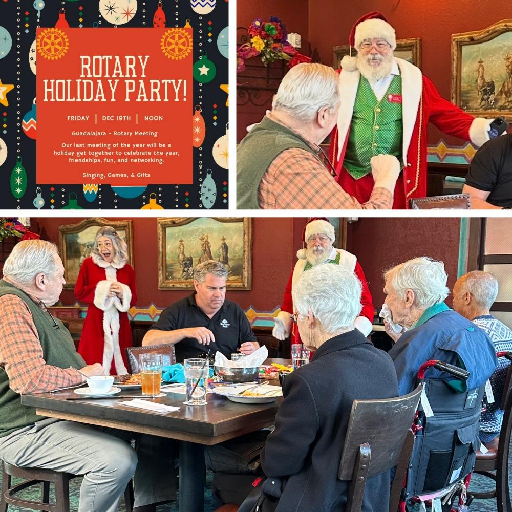 Posted on Dec 19, 2025 Club Rotarians shared fellowship and sang holiday favorites at the final 2025 meeting, joined by a surprise musical duet from Santa and Mrs. Claus.