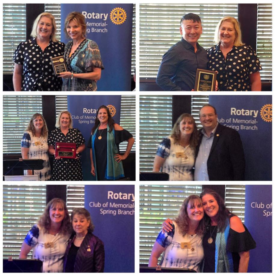 With DG Nancy Anderson, Rotary District 5890 Governor, Rotary Clubs of Bellaire-SW Houston, Rotary Memorial-Spring Branch, and Sharpstown. Presidents Sam Kelner, Melissa Maier and Rex Martinez. AG’s Bill Hall, Easy Ononto, and Scotty Jung.