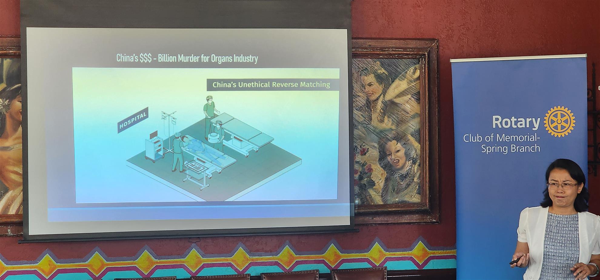 Julia Jiang from the Rotary Satellite Club of Community Action Against Human Trafficking spoke about forced organ harvesting. She has spoken throughout the district to bring awareness of this human rights abuse, particularly in China.
